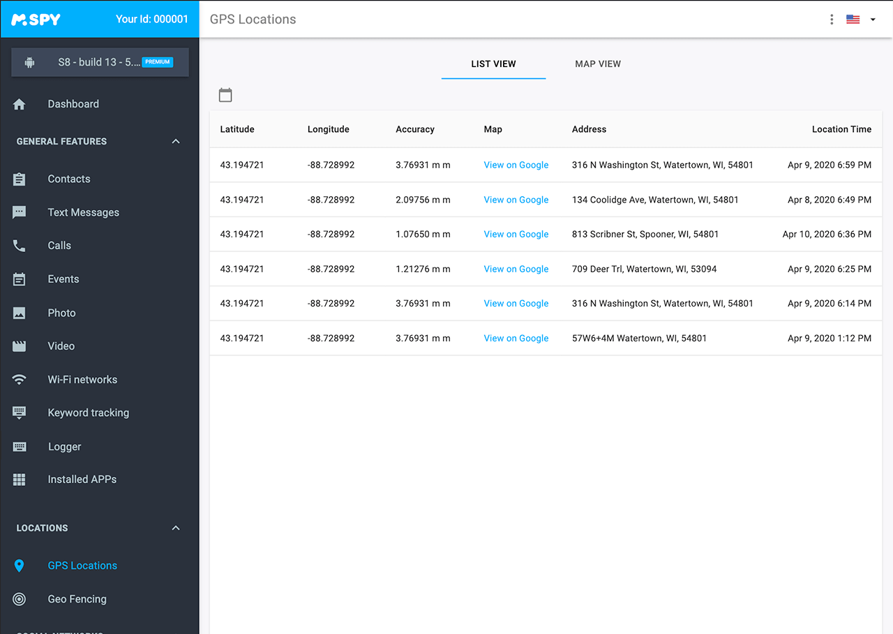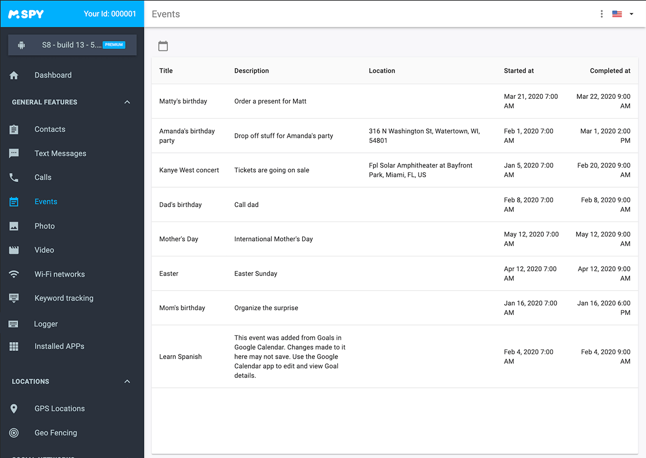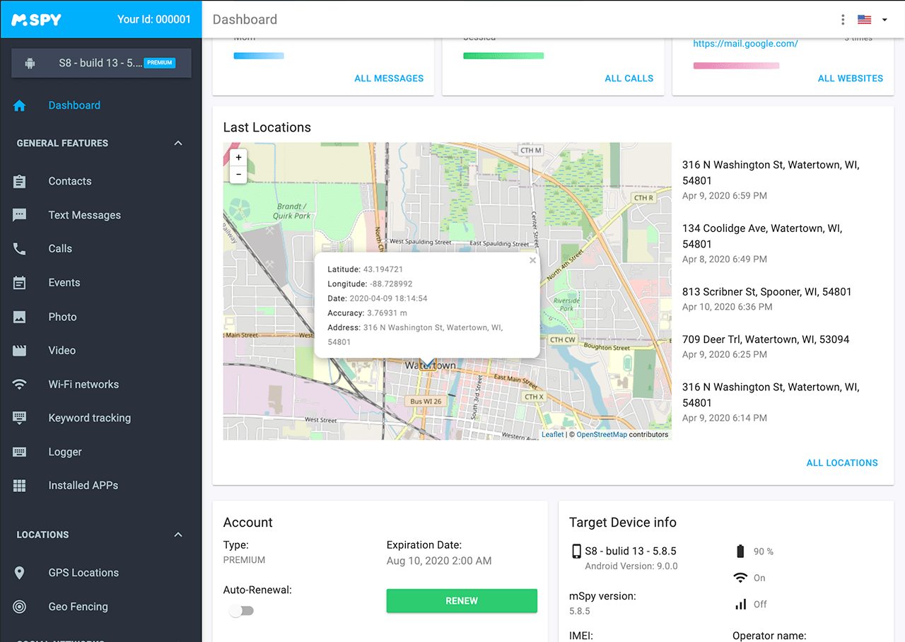 Once mSpy™ is set up on the device, the information will automatically be displayed in your personal Control Panel that can be accessed from any browser.