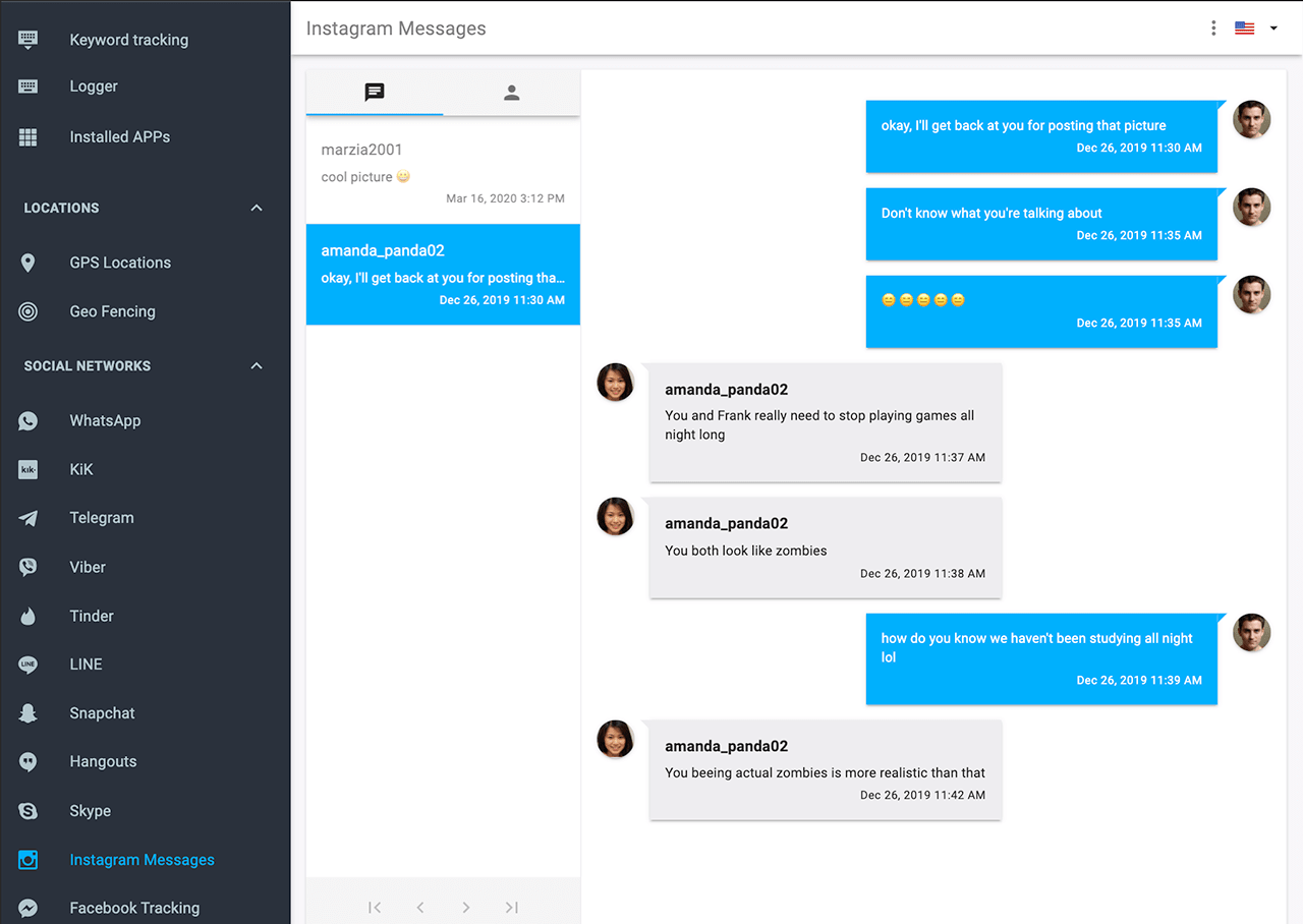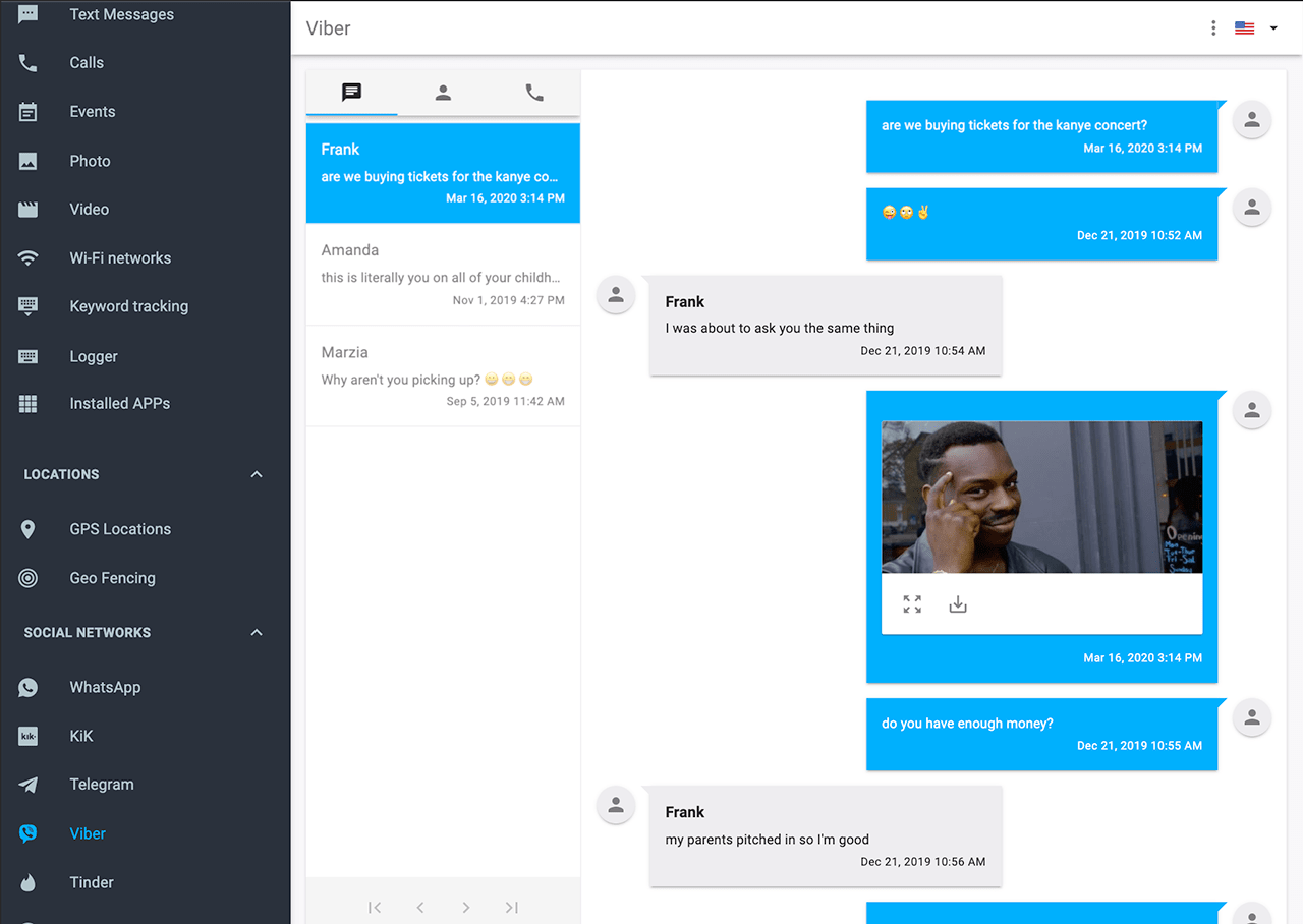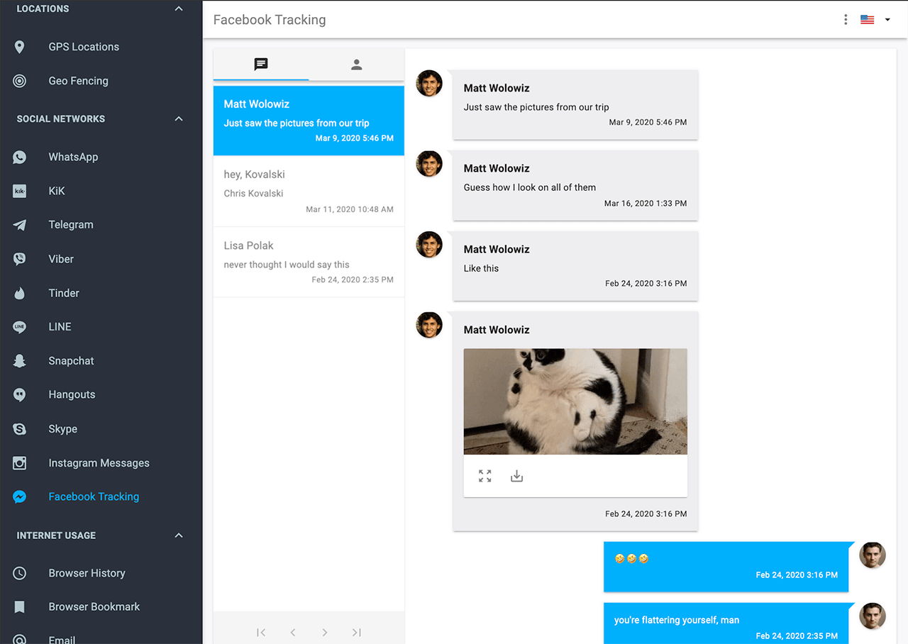 WhatsApp, Snapchat, Facebook, Instagram, Tinder, Telegram, Skype, Viber, Hangout, Line & other apps.